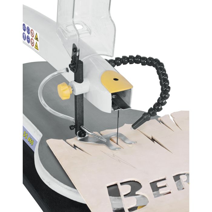 Scie à chantourner Bernardo SS460 – 230V – Cette scie découpe sans problème différents matériaux : bois, plastiques, métaux non ferreux, polystyrène et autres. Avec son arbre flexible et ses diverses meules sur tige, elle offre encore plus de possibilités d’utilisation. C’est une machine qui convient principalement aux modélistes.