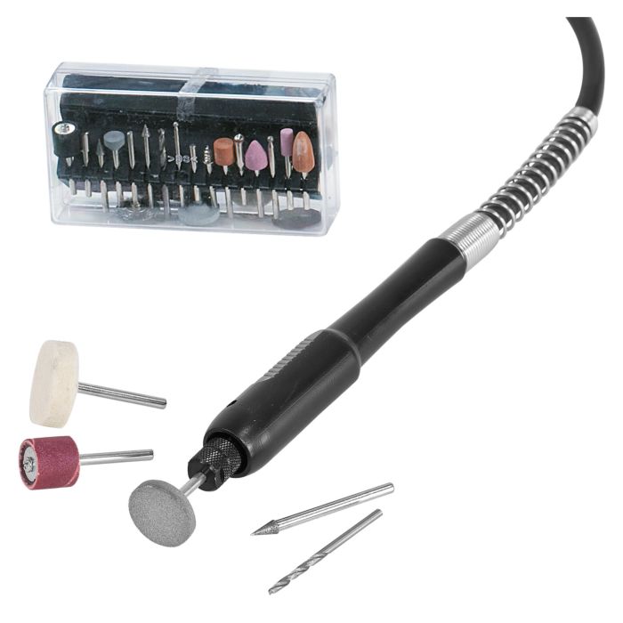 • Avec arbre flexible et diverses meules sur tige pour encore plus de possibilités d’utilisation
